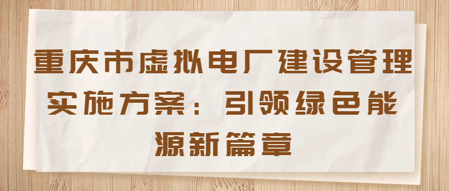 重慶市虛擬電廠建設(shè)管理實(shí)施方案:引領(lǐng)綠色能源新篇章