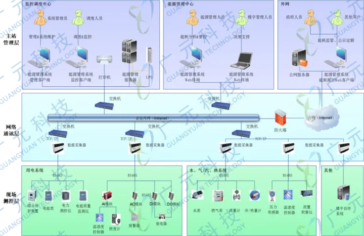 采集系統(tǒng):通過(guò)NB-IOT智能水表以無(wú)線方式上傳至能源管理系統(tǒng)服務(wù)器。