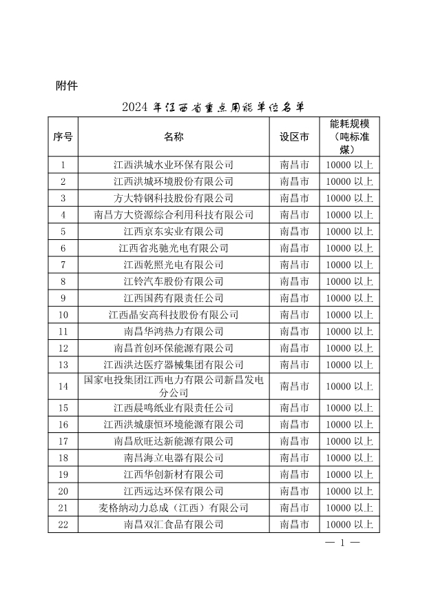 江西省發(fā)展改革委 江西省統(tǒng)計局關(guān)于公布2024年江西省重點用能單位名單的通知