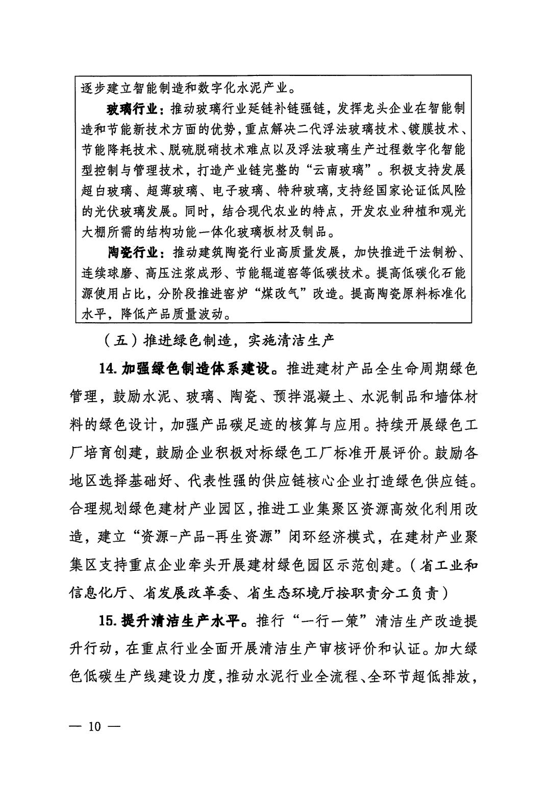 云南省工業(yè)和信息化廳印發(fā)《云南省建材行業(yè)碳達峰實施方案》,目標“十四五”期間,建材行業(yè)結(jié)構(gòu)調(diào)整取得明顯進展,水泥產(chǎn)能控制在合理范圍,節(jié)能低碳技術(shù)與綠色建材持續(xù)推廣,非化石能源消費比重不斷提高;綠色制造與清潔生產(chǎn)水平持續(xù)提升,水泥、玻璃、陶瓷等重點產(chǎn)品單位能耗、碳排放強度不斷下降,水泥熟料單位產(chǎn)品綜合能耗水平降低3%以上。力爭到2025年,水泥、平板玻璃等重點行業(yè)達到能效標桿水平的產(chǎn)能比例超過30%。