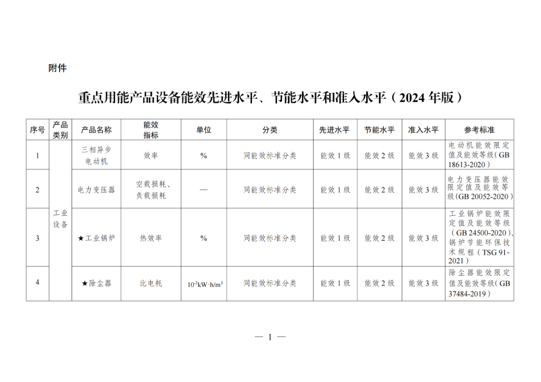 附件:重點用能產(chǎn)品設(shè)備能效先進水平、節(jié)能水平和準入水平(2024年版)